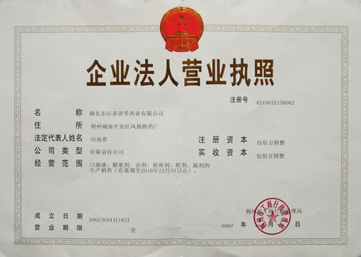 2007年10月19日,湖北东信惠济堂药业有限a片漫画在荆州市工商行政管理局注册成功,这标志着湖北东信惠济堂药业有限a片漫画正式成立。