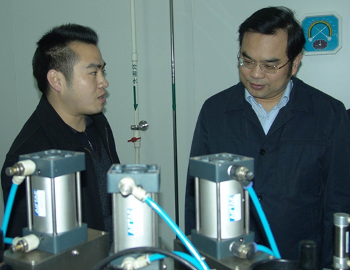 图2:张其宽(右)参观新建生产车间。
